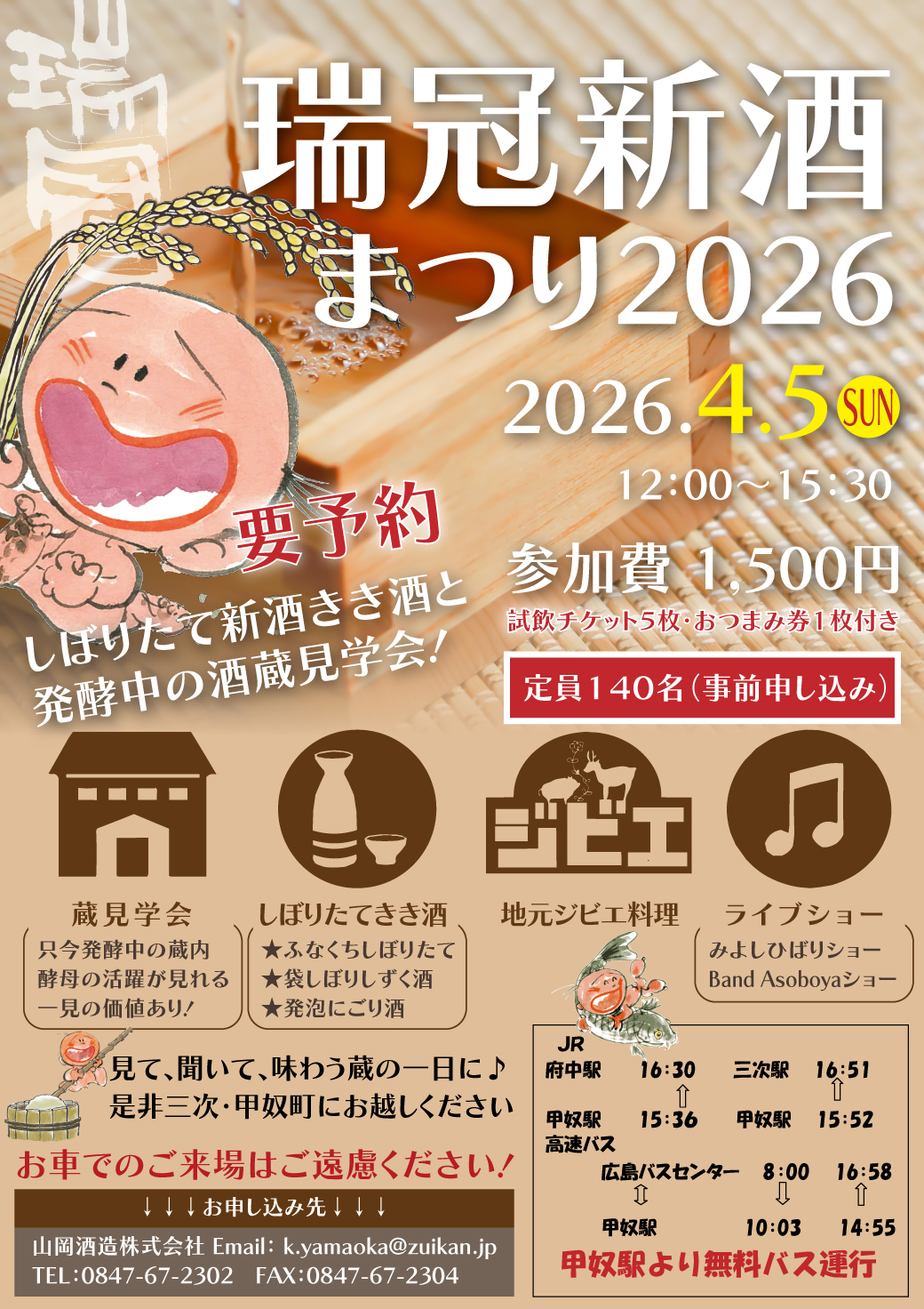 山岡酒造の恒例イベント「瑞冠 新酒まつり」を今年も開催いたします。